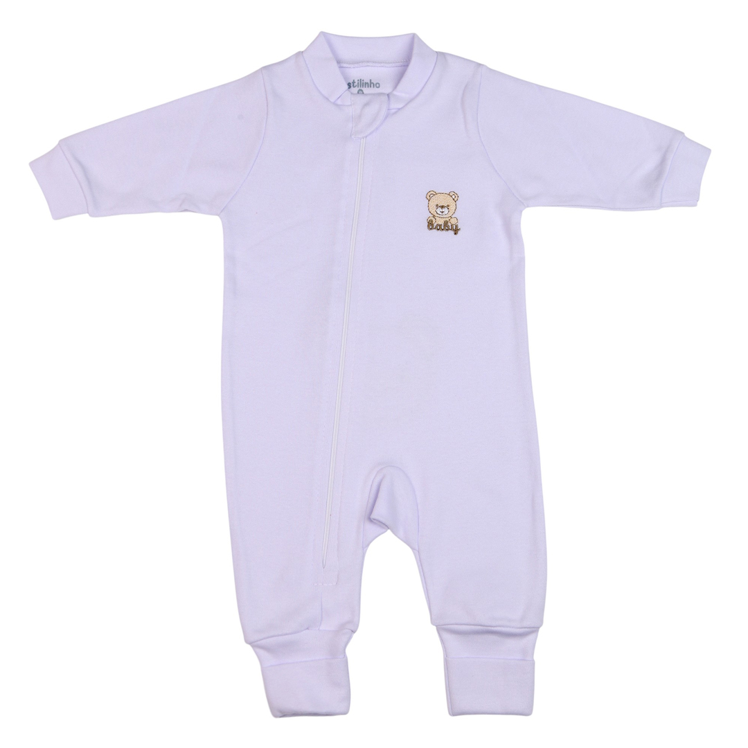 👶 Macacão Longo com Zíper Reversível em Suedine Bordado Bumbum – Estilinho