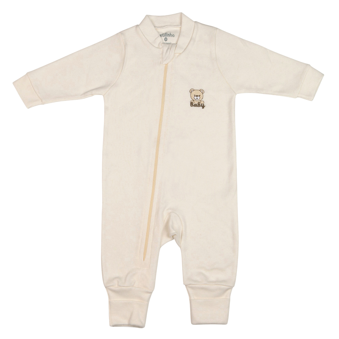 Macacão Longo Zíper Reversível Sued Bordado Urso Bumbum