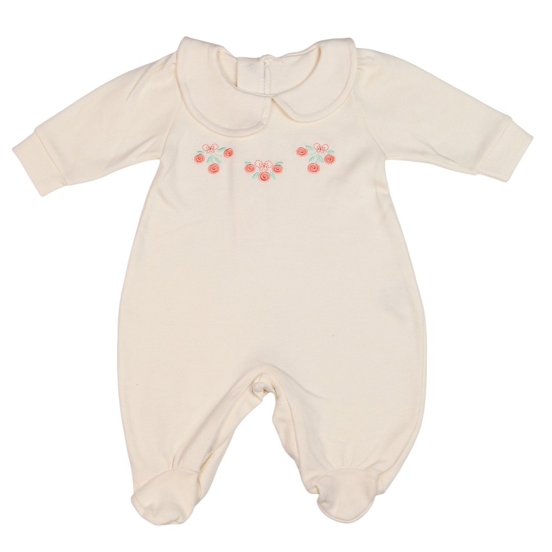 O modelo possui gola bebê delicada, que traz um visual clássico e encantador, além de bordado delicado que valoriza ainda mais a peça. Conta também com botões de pressão, que facilitam na hora de vestir e realizar a troca de fraldas.