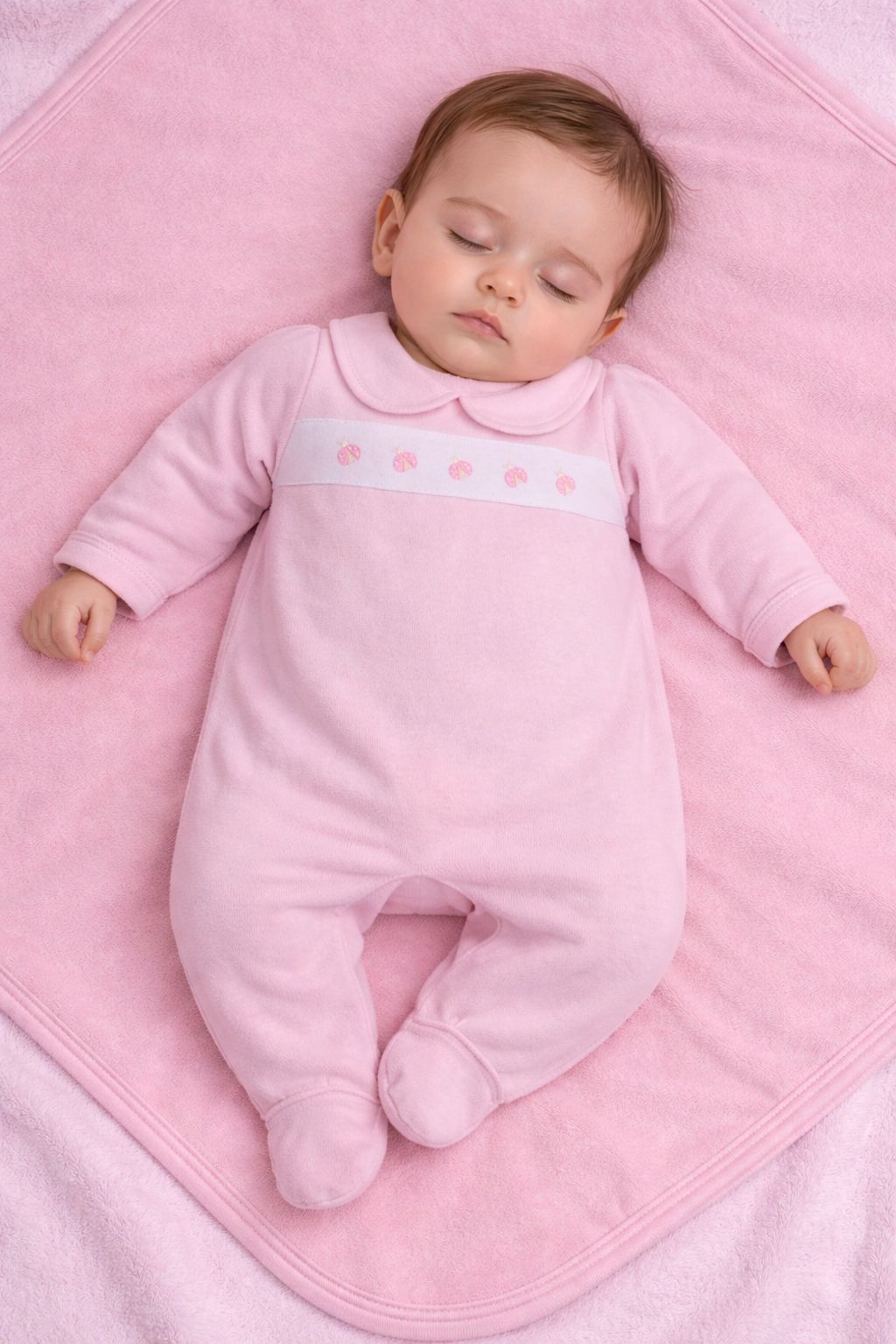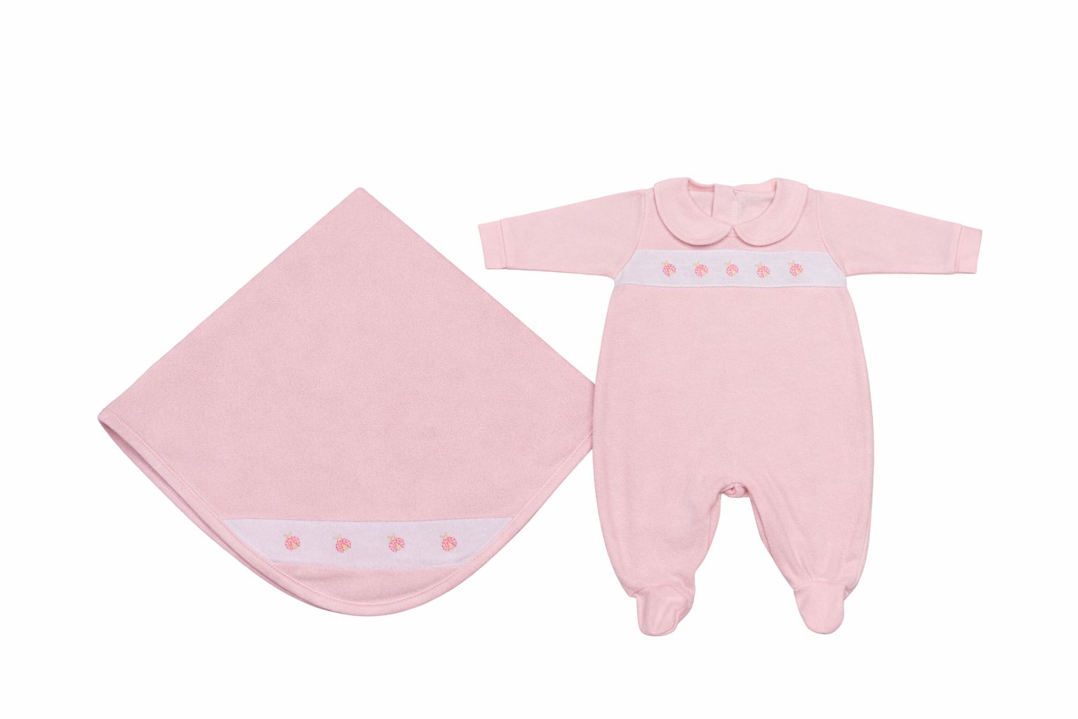Saída Maternidade Estilinho – Macacão Bordado Joaninha + Manta em Suedine Penteado