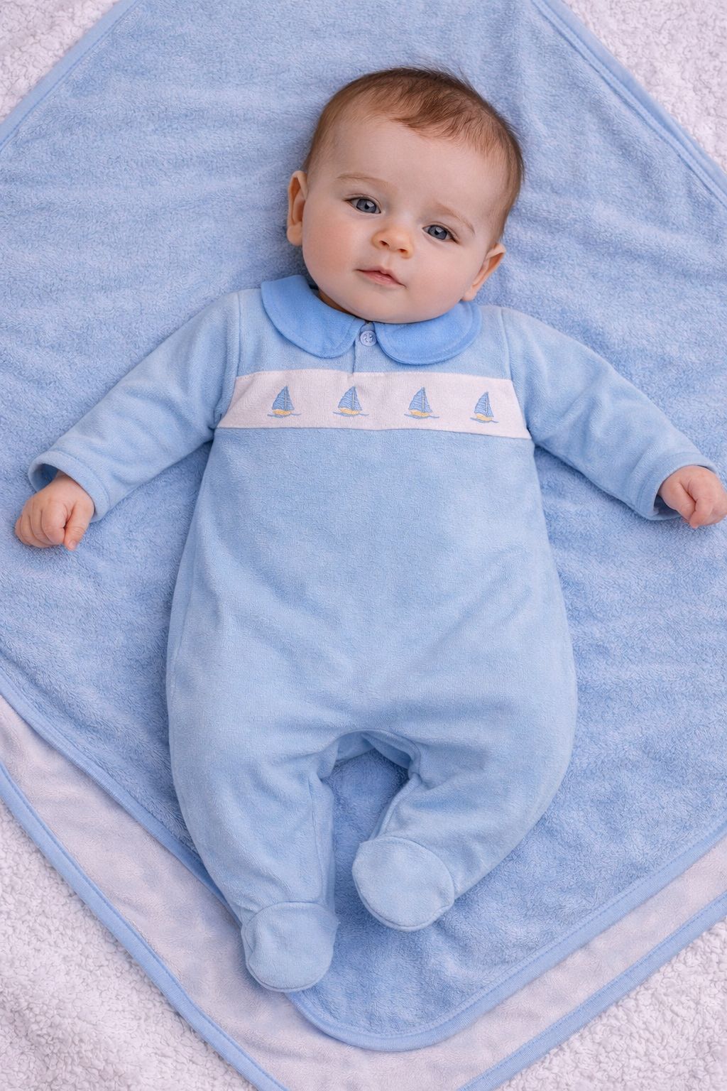O macacão possui modelagem prática, com abertura por botões de pressão que facilitam a troca, além de pezinho fechado que ajuda a manter o bebê aquecido. A peça ganha ainda mais charme com o bordado delicado, que conta com proteção interna para evitar contato direto com a pele do bebê.